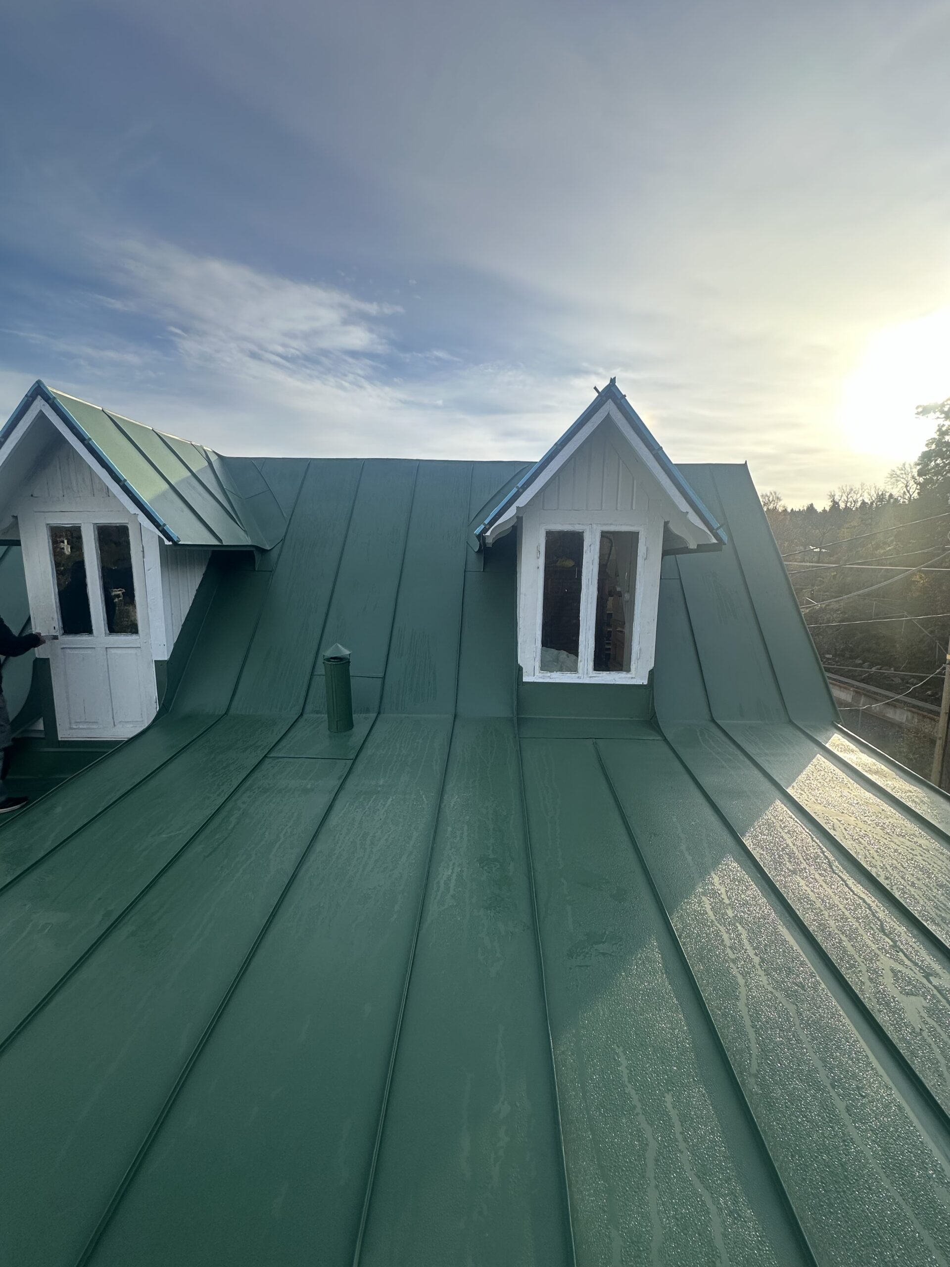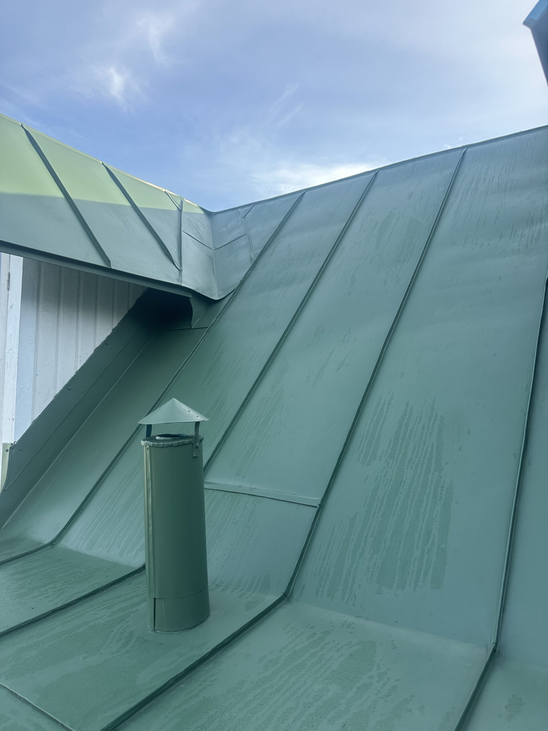 Skogsgrön plåttak. Dubbelfalsatt tak